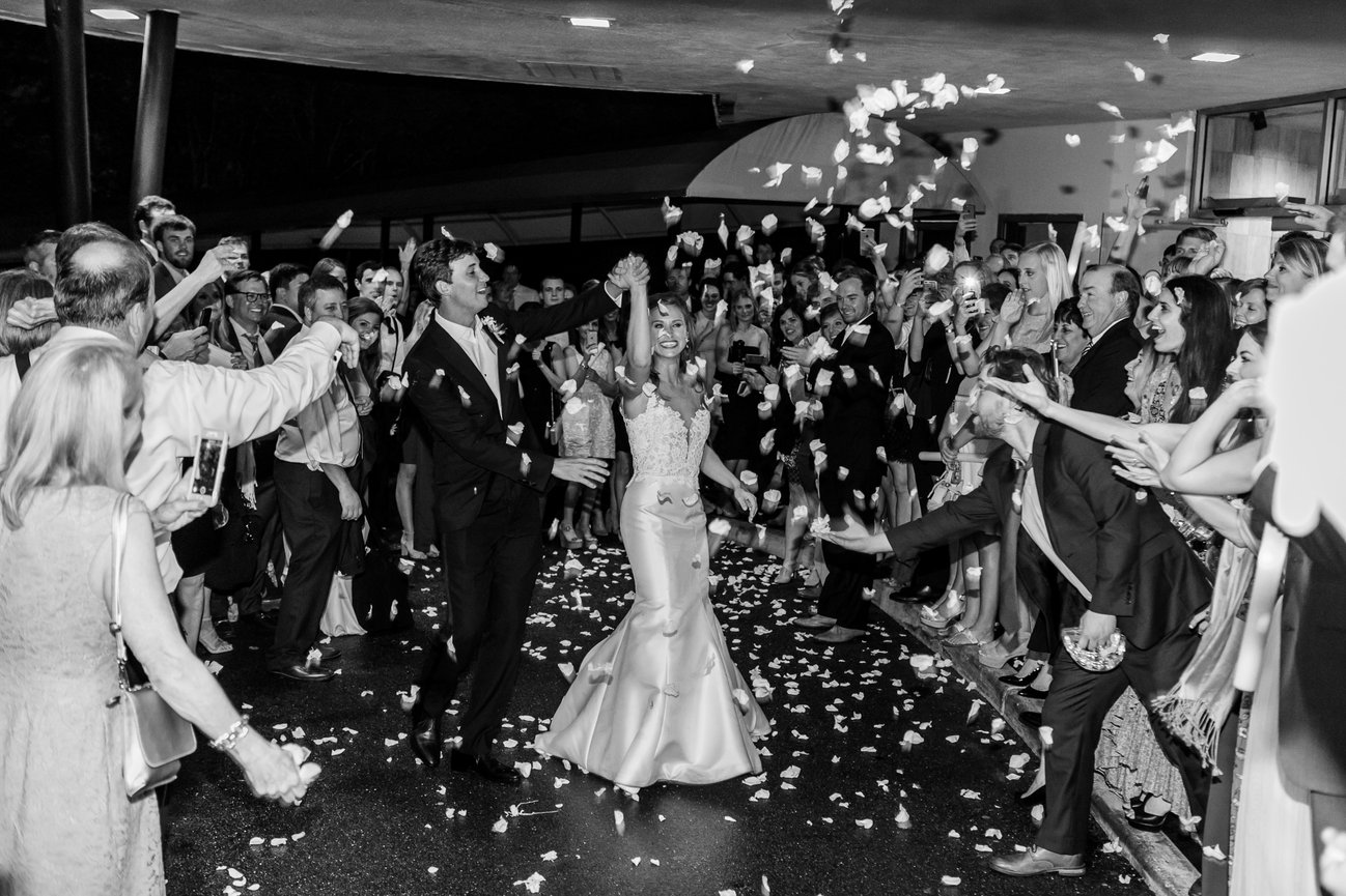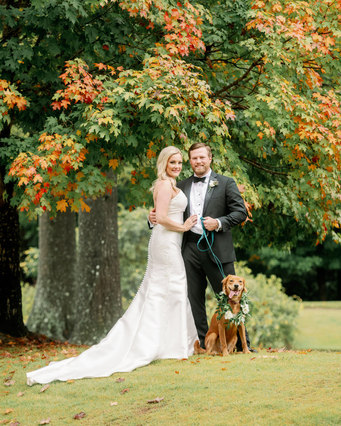 ML + W chose an early fall wedding at their families' private club in the Blue Ridge Mountains of North Carolina, where they first met as kids. Guests enjoyed the mountaintop views while they mingled, dined, and toasted to celebrate the happy couple.